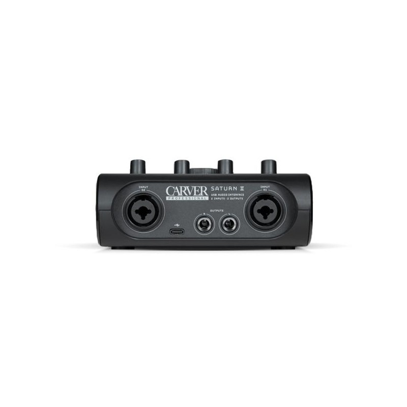 2 x Entrées Combo XLR / Jack TRS (micro ou instrument)1 x Entrée instrument haute impédance (1 MΩ)2 x Sorties ligne TRS (6,3 mm)1 x Sortie casque (6,3 mm) avec contrôle de volume indépendantSélecteur USB/DIRECT pour un monitoring sans latenceBouton Loopback pour activer le retour audio logicielRésolution audio : 24 bits / 192 kHzRéponse en fréquence : 20 Hz – 20 kHzRapport signal/bruit :Micro/Ligne : 106 dBCasque : 102 dBDistorsion (THD+N) :Micro/Ligne/Instrument : 0,005 %Casque : 0,05 %Dimensions : 12,5 x 11,3 x 3,3–6 cm (avec potentiomètre)Poids : 330 gContenu de la boîte :Interface Carver Saturn IICâble USB-CLicence Steinberg Cubase LE