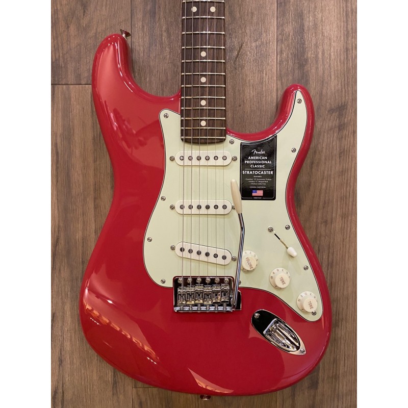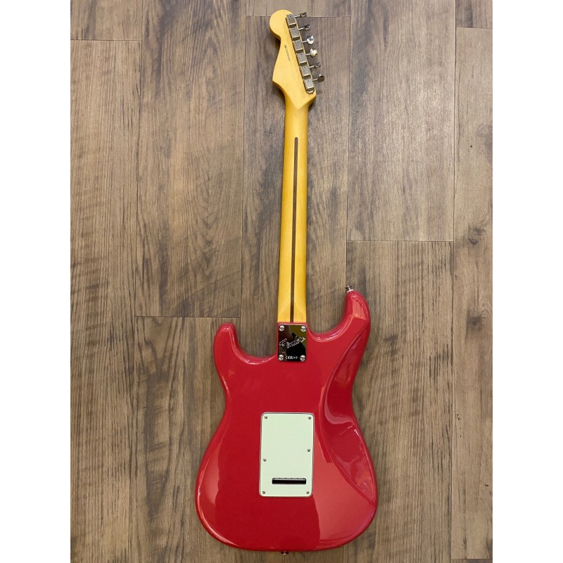 Corps en aulneManche vissé en érableTouche en palissandreRepères "points" blancsProfil du manche: Modern CRayon de la touche: 241 mm (9,5")Diapason: 648 mm (25,5")Largeur au sillet: 42,8 mm (1,685")Sillet en os synthétique22 frettes Jumbo2 micros simple bobinage Coastline '57 Stratocaster (manche & chevalet), 1 micro simple bobinage Coastline '57 Stratocaster RWRP (milieu)1 réglage de volume général2 réglages de tonalitéSélecteur 5 positionsPickguard 3 plis vert mentheVibrato synchronisé style Vintage avec 6 pontetsMécaniques échelonnées Fender ClassicGearAccastillage nickel/chromeCordes Fender USA 250L Nickel Plated Steel .009-.042Couleur: Faded Dakota RedHousse/gig bag de luxe incl.Fabriquée aux États-Unis