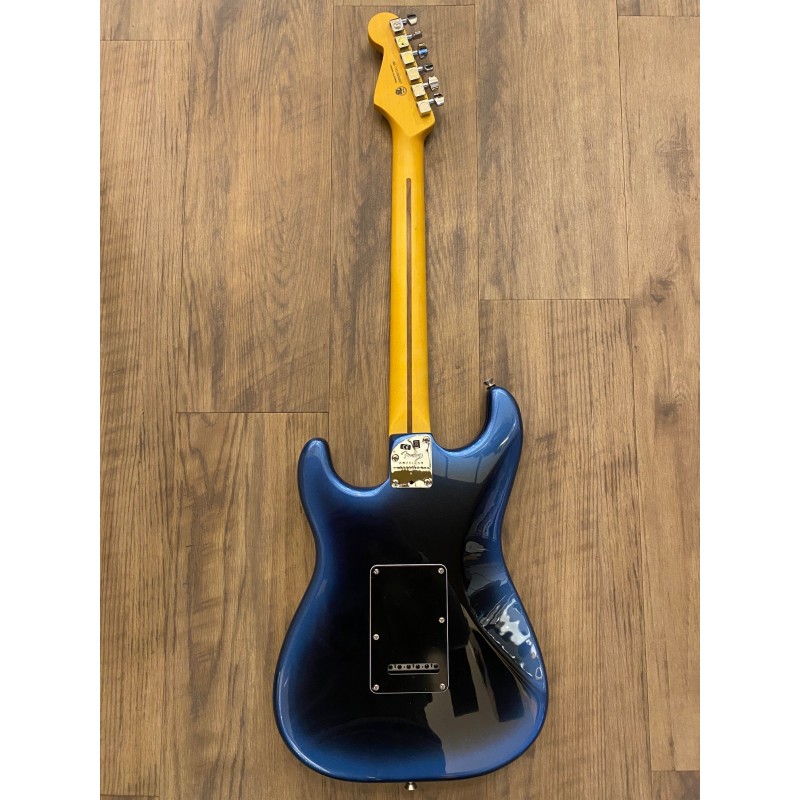 Corps en aulneManche vissé en érableTouche en palissandreProfil du manche: Deep CDiapason: 648 mm (25,5")Rayon de la touche: 241 mm (9,5")Largeur au sillet: 42,8 mm (1,69")22 frettes hautes/étroites3 micros simple bobinage V-Mod II 1 réglage de volume2 réglages de tonalité Push/Pull (actives le micro manche en position 1 et 2 du sélecteur)Sélecteur 5 positionsVibrato synchronisé 2 points avec pontets pliés en acier, bras inséré et bloc en acier laminé à froidAccastillage nickeléCordes Fender 250L NPS / 009 - 042 Couleur: Dark NightLivrée en étuiFabriquée aux USA