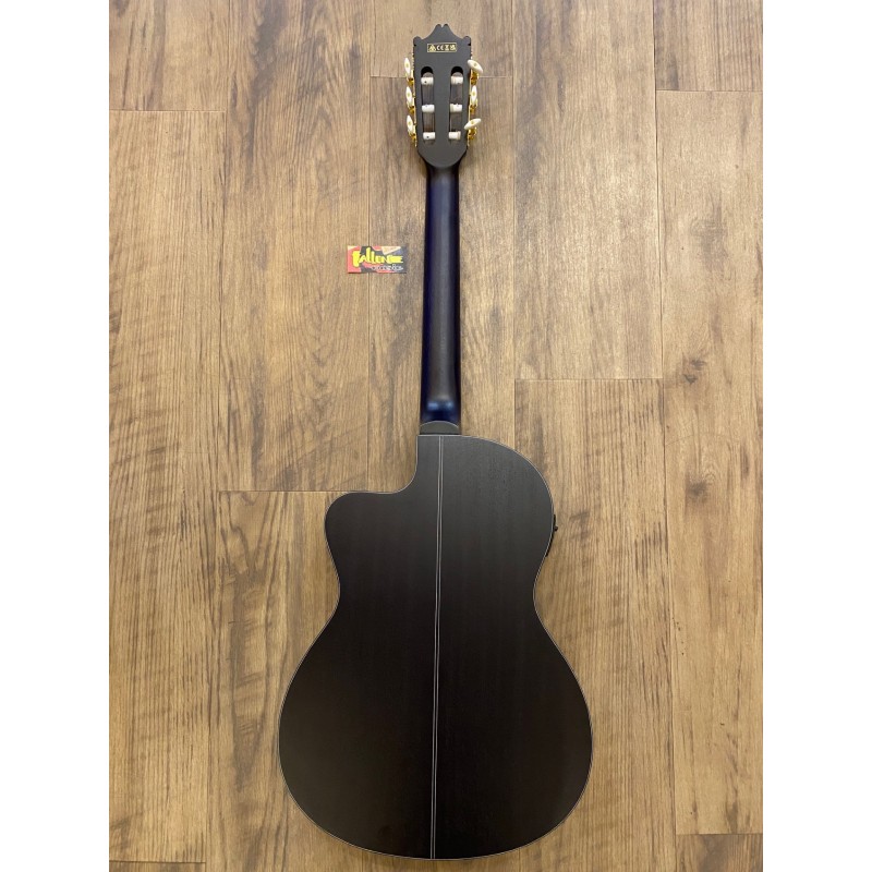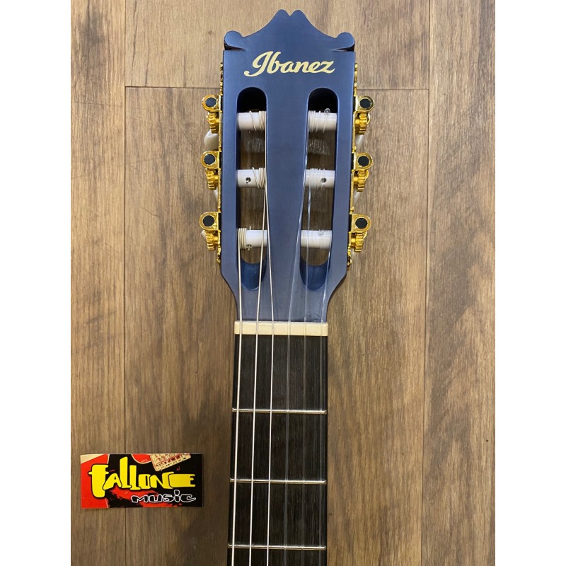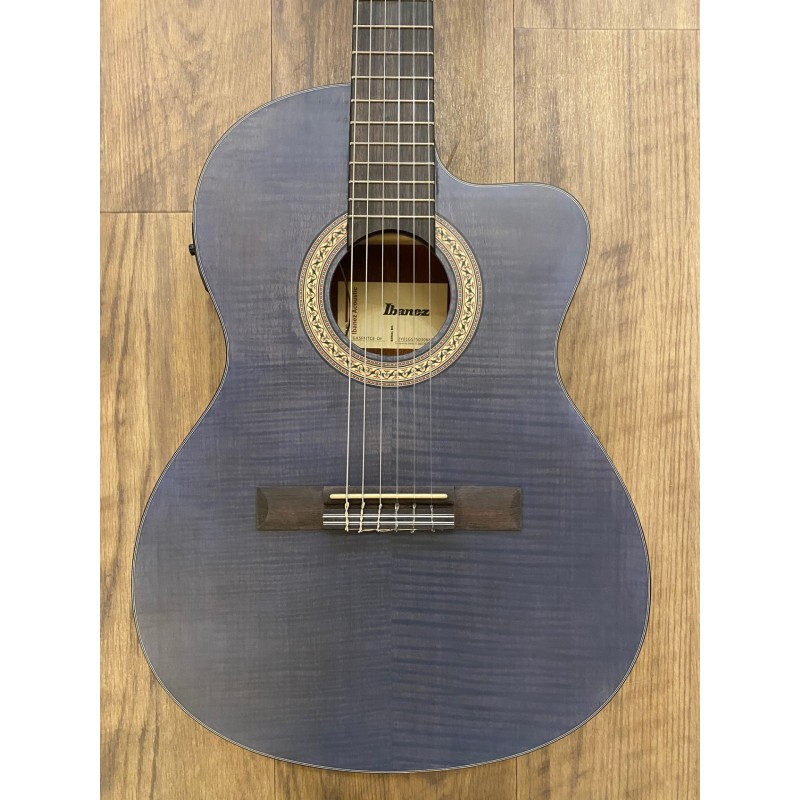 Forme Thinline Cutaway ClassicalFond et éclisses en sapeleTable en érable flamméManche collé en okouméTouche en amaranteRayon de la touche platProfil du manche: GADiapason: 650 mmLargeur au sillet: 46 mmSillet en plastique21 frettesMicro Ibanez sous le sillet de chevaletPréamplificateur Ibanez AEQ-2T avec accordeur intégréChevalet en amaranteMécaniques Classical doréesFinition du corps/manche: Vernis polyuréthane à pores ouvertsmatCouleur: Blueberry