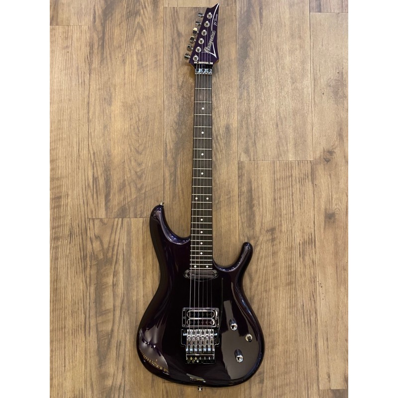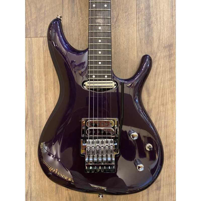Signature Joe SatrianiCorps en aulneManche 3 pièces en érable/bubingaTouche en palissandre24 frettesLargeur au sillet: 42 mmDiapason: 648 mm1 micro double bobinage DiMarzio Satch Track (manche)1 micro double bobinage DiMarzio Mo Joe (chevalet)Vibrato JS/EdgeFiltre passe-haut/sélecteur Coil-TapCouleur: Muscle Car PurpleLivrée en étuiFabriquée au Japon