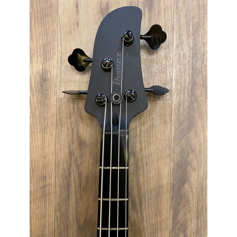 Corps en okouméManche vissé en érable torréfiéTouche en ébonolRayon de la touche: 240 mm (9,44")Diapason: 864 mm (34")Largeur au sillet: 41 mm (1,6")Sillet en plastique20 frettes Medium1 micro simple bobinage splitté Dynamix P, 1 micro simple bobinage Dynamix JPréamplificateur Ibanez Custom avec EQ 2 bandesContrôles: Volume, balance, graves, aigusChevalet B10Mécaniques IbanezAccastillage noirCordes D'Addario XL165Couleur: Black Flat
