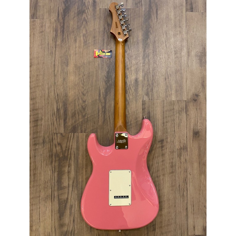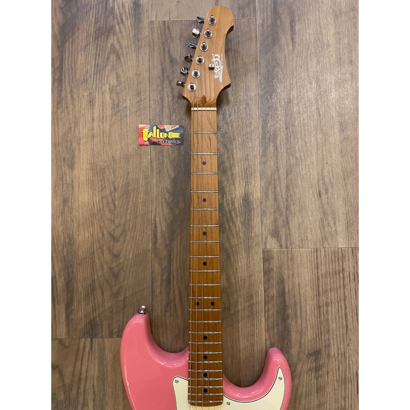 Manche érable canadien torréfié Forme du manche Moderne CTouche érable torréfiéRayon 9,5″Largeur d'écrou 1,65″Sillet Polymer FibreTige de serrage Double actionDiapason 25,5″Nombre de frettes 22Corps TilleulMicros SSS, CéramiqueVibrato Tremolo WilkinsonContrôles 1V, 2T, interrupteur 5 voiesMecaniques ChromeMatériel ChromeCouleur Burgundy Pink