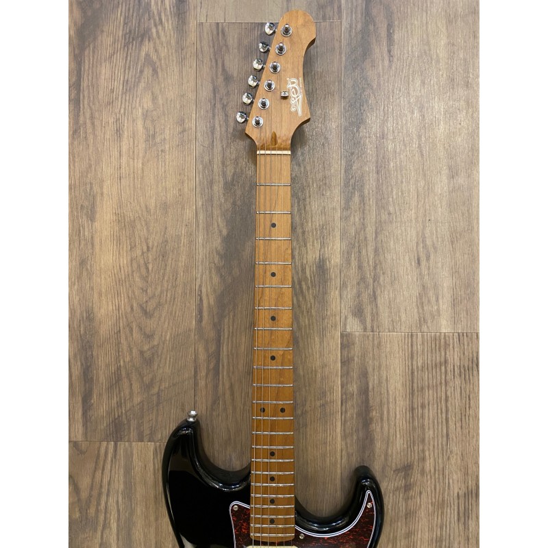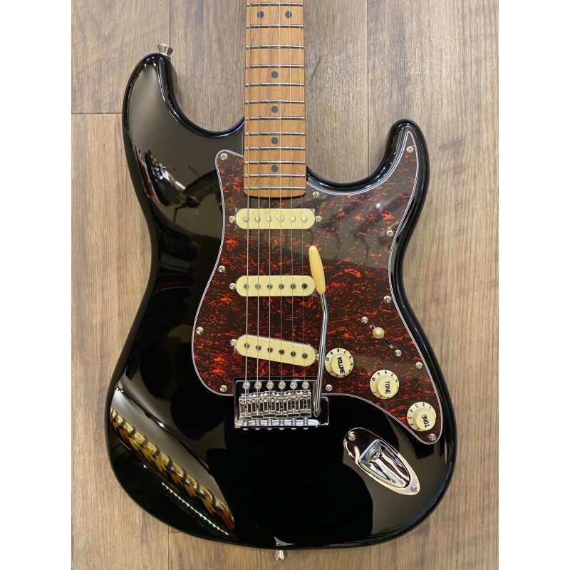 Manche érable canadien torréfiéForme du manche Moderne CTouche érable torréfiéRayon 9,5″Largeur d'écrou 1,65″Sillet Polymer FibreTige de serrage Double actionDiapason 25,5″Nombre de frettes 22Corps TilleulMicros SSS, CéramiqueVibrato Tremolo WilkinsonContrôles 1V, 2T, interrupteur 5 voiesMecaniques Chrome, verrouillage Matériel ChromeCouleur Black