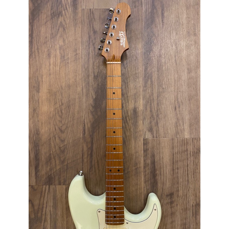 Manche érable canadien torréfiéForme du manche Moderne CTouche érable torréfiéRayon 9,5″Largeur d'écrou 1,65″Sillet Polymer FibreTige de serrage Double actionDiapason 25,5″Nombre de frettes 22Corps TilleulMicros SSS, CéramiqueVibrato Tremolo WilkinsonContrôles 1V, 2T, interrupteur 5 voiesMecaniques Chrome, verrouillage Matériel ChromeCouleur White
