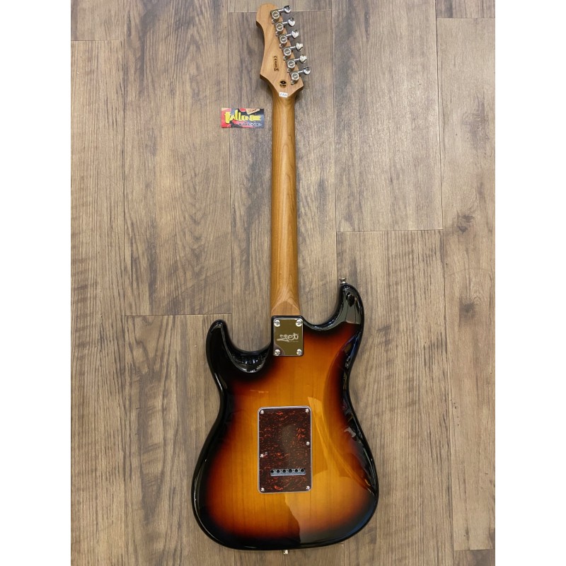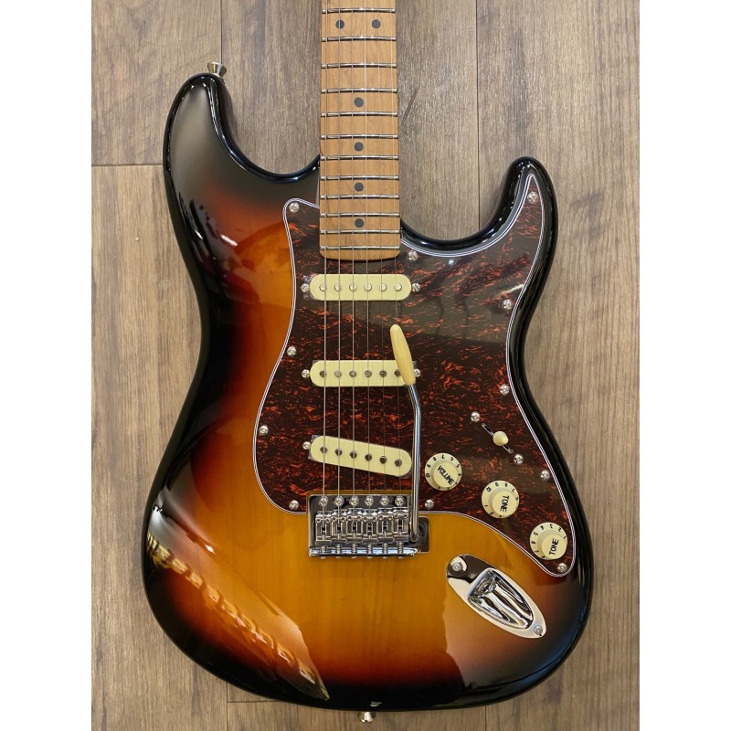 Manche érable canadien torréfiéForme du manche Moderne CTouche érable torréfiéRayon 9,5″Largeur d'écrou 1,65″Sillet Polymer FibreTige de serrage Double actionDiapason 25,5″Nombre de frettes 22Corps TilleulMicros SSS, CéramiqueVibrato Tremolo WilkinsonContrôles 1V, 2T, interrupteur 5 voiesMecaniques ChromeMatériel ChromeCouleur Sunburst