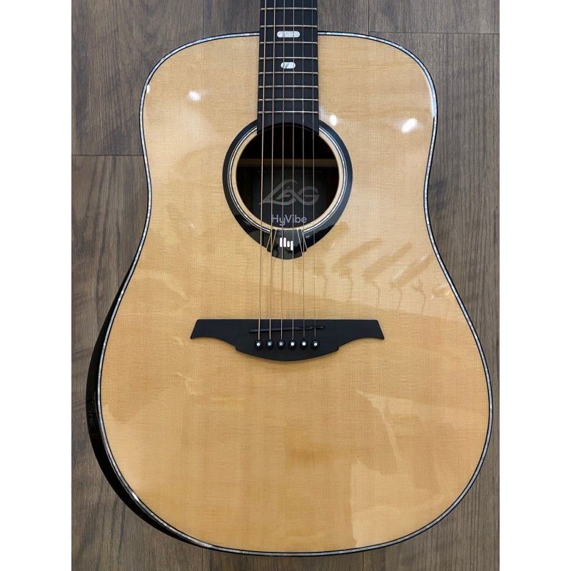 Accastillage : Noir satinéCatégorie : Folk électroacoustiqueChevalet : Black BrankowoodColoris : NaturelCordes : Acier (Coated Phosphore Bronze Light 12-52)Diapason : 650 mmÉlectronique : HyVibe H2Filets : AbaloneFinition : BrillanteFond & éclisses : Ébène de MacassarFormat : DreadnoughtHousse/étui : GigbagLargeur au sillet : 43 mmManche : KhayaMécaniques : À bain d'huileNombre de cordes : 6Nombre de frettes : 20Radius : 350 mmSillets : Compensé graphite noir (72 mm & 43 mm)Table : Épicéa Engelmann massifTige de réglage : Double-sensTouche : Black BrankowoodType de frette : Medium Silver NickelTête : Black BrankowoodSpecs complémentaires :BevelÉlectronique HyVibe H2 :Actuateurs sous le chevalet transmettant les vibrations à la table d'harmonieMulti-effet intégréLooper multipiste intégréMode enceinte sans filAppli mobile pour encore plus de fonctionnalitésAccordeur précisMétronome complet