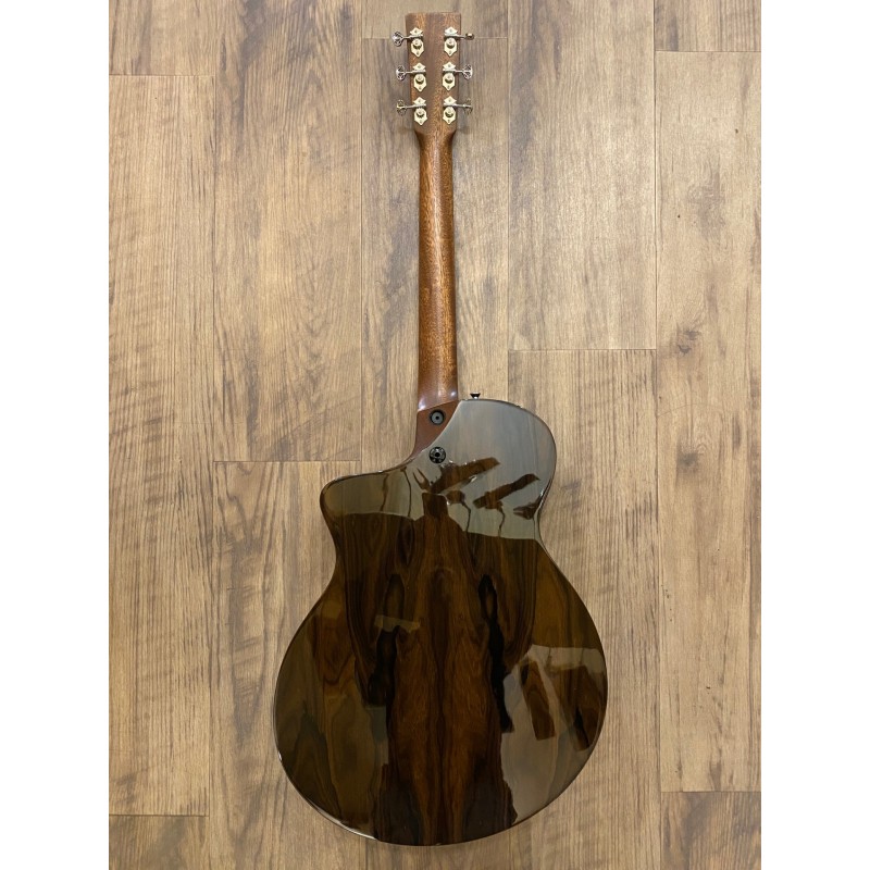 Forme S-13 Fret avec pan coupéTable en épicéaFond et éclisses en ziricoteBarrage en X en épicéaManche en bois dur sélectionnéTouche en ébèneRepères spéciaux "style SC-13"Rosace multi-bandes design ApertureFilet blancDiapason: 645 mm (25,4")Rayon de la touche: 16"Largeur au sillet: 44,5 mm (1,75")Sillet de tête en corian blanc20 frettesSystème de micro L.R. Baggs ElementPickguard imitation écaille de tortueChevalet en ébène avec sillet compensé en Tusq blancEspacement des cordes au niveau du chevalet: 54,8 mm (2,16")Cordes Martin Guitars Authentic Acoustic Lifespan 2.0 Guitar Strings Phosphor Bronze - Light .012-.053 Mécaniques ouvertes nickeléesCouleur: NaturelHousse/gig bag incl.