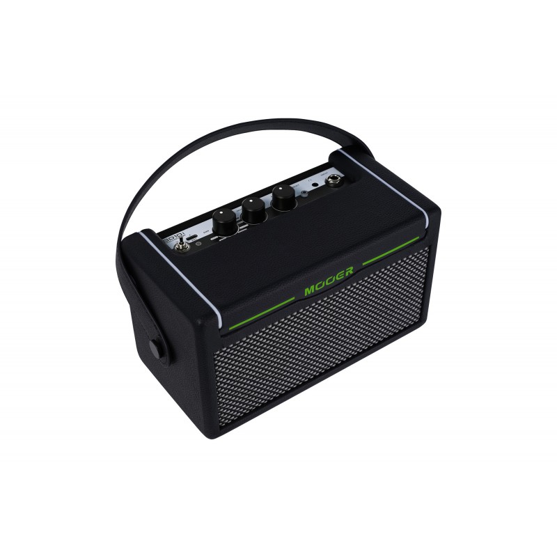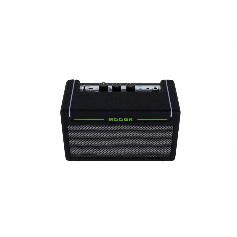 Design à transistor/semi-conducteursPuissance: 10 Watt RMSAmplificateur de classe DBatterie rechargeable avec jusqu'à 5 heures d'autonomie52 recréations numériques de haute qualité d'amplificateurs populaires basés sur la technologie MNRS49 effets classiques et expérimentauxAccordeur chromatique intégré40 préréglages modifiablesConnexion Bluetooth sans fil pour entrée AUX40 variantes de boîtes à rythmes et 10 métronomesLooper de 80 secondes synchronisable avec la boîte à rythmesApplication iAMP dédiée pour l'édition complète des effets, le chargement des sons vers et depuis le MOOER Cloud et les mises à jour du firmwarePrise en charge du contrôle avec footswitch sans fil (footswitch optionnel non fourni)2 haut-parleurs 2" FRFR spéciauxContrôles: Amp, Instrument, AudioEntrée instrument sur Jack mono 6,3 mmSortie casque sur mini Jack stéréo 3,5 mmPort USB-C pour l'enregistrement direct ou la lecture audio via USB-OGTAlimentation via le port USB-CDimensions (L x l x H): 233 x 133 x 140 mmPoids: 1,95 kgCouleur: NoirCâble adaptateur USB-A vers USB-C et guide de démarrage rapide incl.