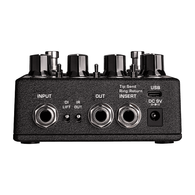 Pour guitare électriqueAmplificateur/simulateur de baffle dans une pédale6 modèles d'amplificateurs légendairesContrôles: Gain, Master, Boost N.R., Bass Middle, Treble, PresenceCommutateur de mode: Vintage, Classic, ModernCommutateurs d'amplificateur: Brown, Red, IridiumCommutateur de scène: S1, S2, S3Commutateur DI LiftCommutateur IR OutLED de statut: Effect OnCommutateurs au pied: A/B (Hold for Save), Scene (Hold for Alt)Entrée/sortie sur Jack 6,3 mmConnexion Insert sur Jack 6,3 mmPort USB (enregistrement/mises à jour du firmware/éditeur Amp Academy)Sortie DI sur XLREntrée Aux sur mini Jack 3,5 mmSortie casque sur mini Jack 3,5 mmConnexion pour alimentation secteur sur prise cylindrique 2,1 x 5,5 mm, polarité négative à l'intérieurAucune possibilité de fonctionnement avec pileBloc d'alimentation 9 V DC adapté optionnel non-fourni Consommation de courant: 300 mADimensions (L x P x H): 105 x 115 x 58 mmPoids: 440 g