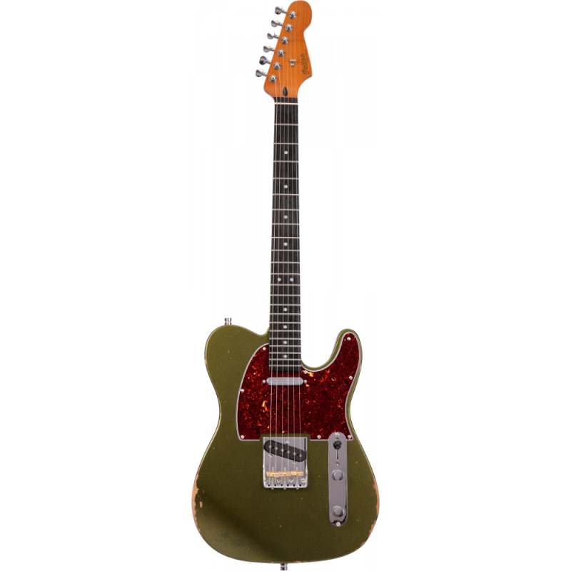 Sherwood Green Nitro Finish RelicMachine Head: Chrome, Locking 1:19Neck: Quarter Sawn Roasted Maple, Satin finishShape: Modern C shapeFretboard! Rosewood, Luminescent Side Dot Inlay Radius: 13,75"Nut Width: 42mmNut: BoneTruss Rod: Double Actionstring Scale: 25,5″Number of Frets: 22 Jumbo Stainless steel, rounded edgeBody: Paulownia Body Pickup: SS, Custom handwound, 7k, Alpha pots, Alnico VBridge: Fixed bridgeControls: 1 Volume, 1 ToneHardware: Chrome, LockingFinish: Nitro Finish, RelicStrings: Daddario EXL 110, 10-46