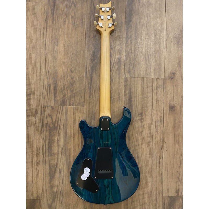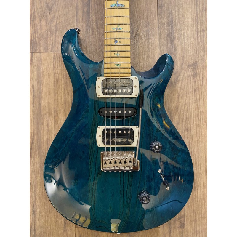 Corps solidbody en frêne des maraisTable sculptée “Shallow Violin”Manche vissé érable avec touche érable22 frettesDiapason 25’’ [635 mm]Profil de manche Wide ThinIncrustation “Birds”Logo Signature “SE” sur la têteAccastillage nickelVibrato breveté PRSMécaniques PRS avec boutons WingMicro aigu 85/15 “S”Micro milieu AS-01 Single CoilMicro grave 85/15 “S”Contrôle de volume, contrôle de tonalité avec Push/Pull pour split microsSélecteur micros 5 positionsCordes tirant 9-42Livrée en housseFinition: Iridescent Blue