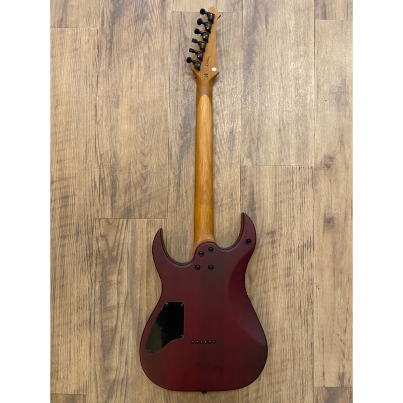 Corps : Peuplier torréfié Finition : Satin Wine RedSilhouette : Double CutawayManche : Érable canadien grilléProfil du manche : D moderneManche : Ebony Tech amélioréRayon de la frette : 14"Nombre de frettes : 24 JumboDiapason : 25,5"Sillet : OsLargeur du sillet : 43 mm, 48 mm sur les modèles à 7 cordesBarre de réglage : Double actionMécaniques : Noir, verrouillableMicros : HH, Spira Villain, Custom Made, 12k Output, Ceramic MagnetChevalet : Fixe, String-Through HardtailCommandes : 1 volume, 1 tonalitéCouleur de l'accastillage : noir