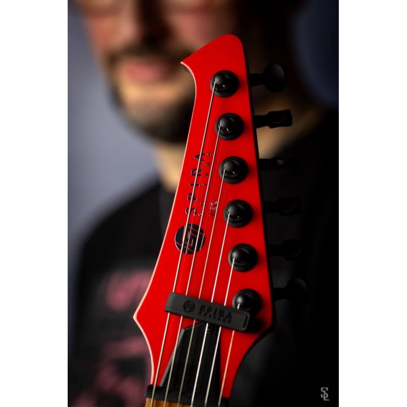 Corps : Peuplier torréfiéFinition : Red GlossySilhouette : Double CutawayManche : Érable canadien grilléProfil du manche : D moderneManche : Ebony Tech amélioréRayon de la frette : 14"Nombre de frettes : 24 JumboDiapason : 26,5″"Sillet : OsLargeur du sillet : 48 mmBarre de réglage : Double actionMécaniques : Noir, verrouillableMicros : HH, Spira Villain, Custom Made, 12k Output, Ceramic MagnetChevalet : Fixe, String-Through HardtailCommandes : 1 volume, 1 tonalitéCouleur de l'accastillage : noir