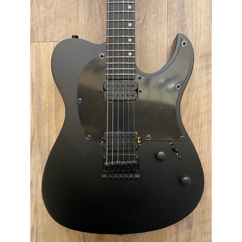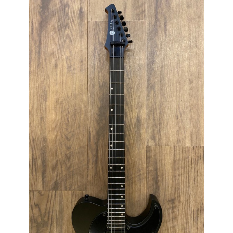 Corps : Peuplier torréfiéFinition : Satin BlackSilhouette : Double CutawayManche : Érable canadien torréfiéProfil du manche : D moderneManche : Ebony Tech amélioréRayon de la frette : 14"Nombre de frettes : 24 JumboDiapason : 27"Sillet : OsLargeur du sillet : 43 mmBarre de réglage : Double actionMécaniques : Noir, verrouillableMicros : HH, Spira Villain, Custom Made, 12k Output, Ceramic MagnetChevalet : Fixe, String-Through HardtailCommandes : 1 volume, 1 tonalitéCouleur de l'accastillage : noir