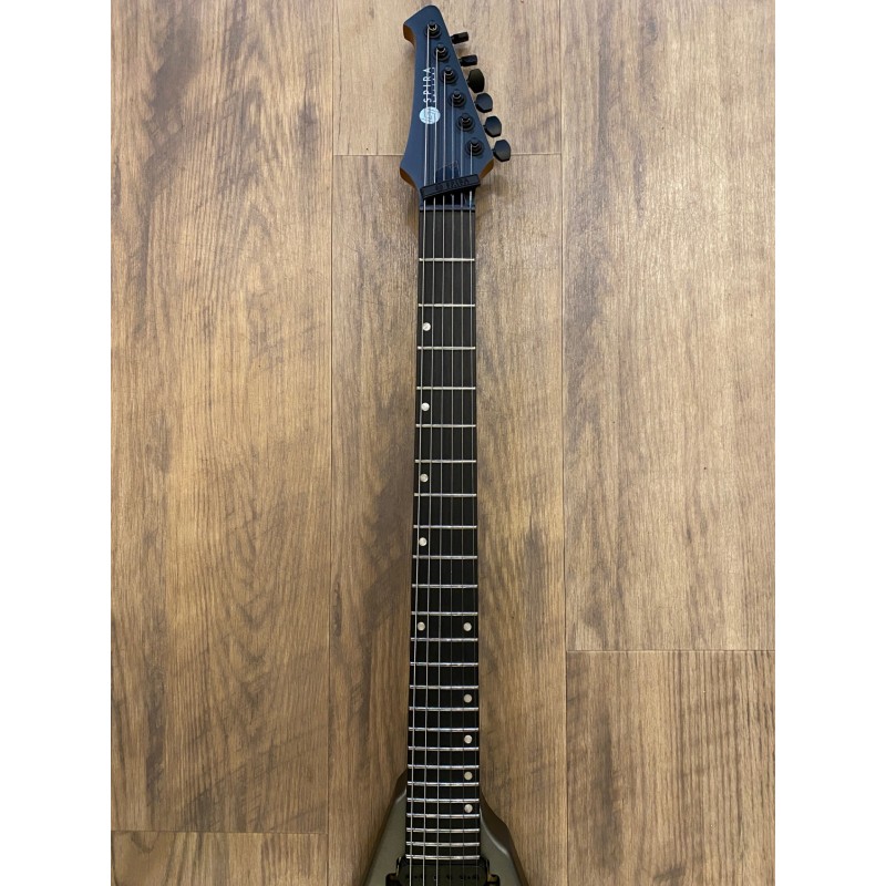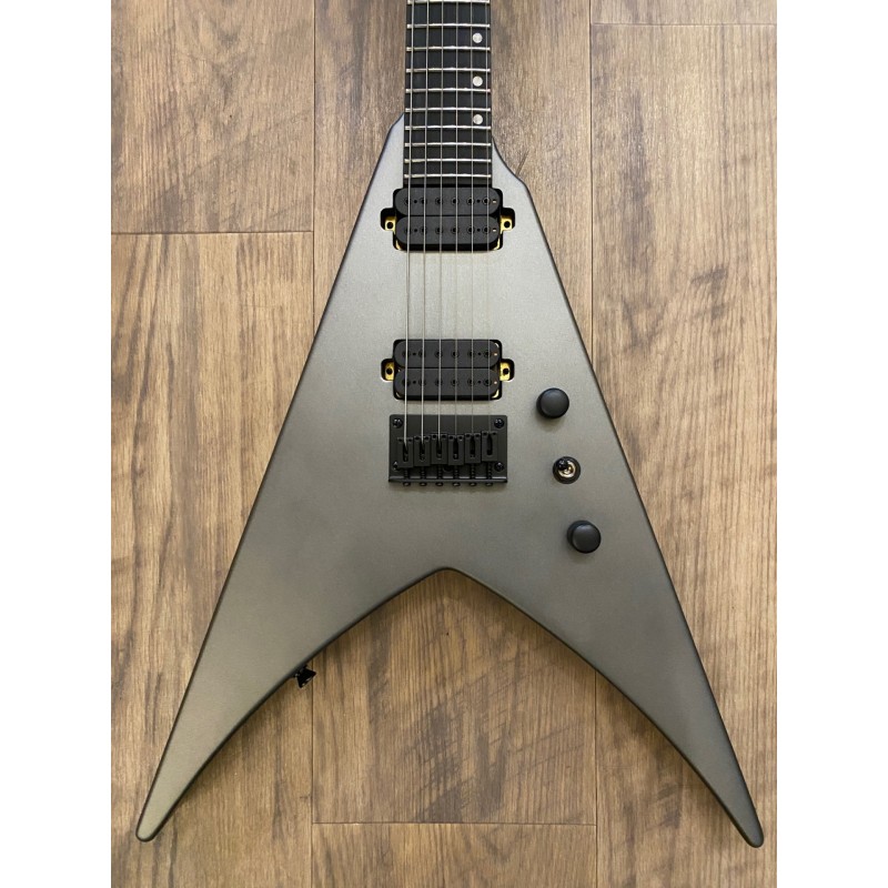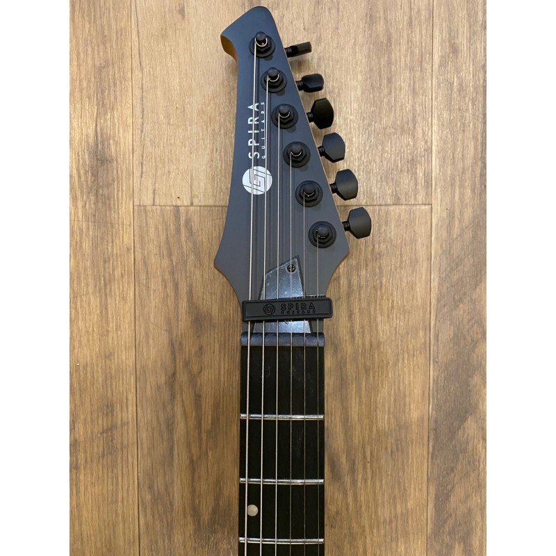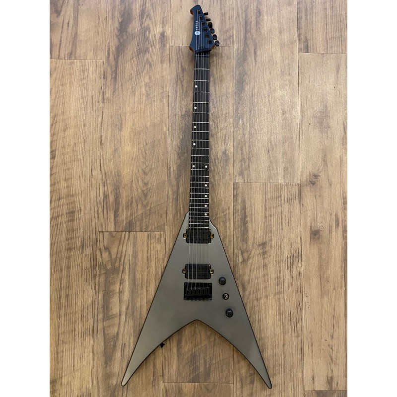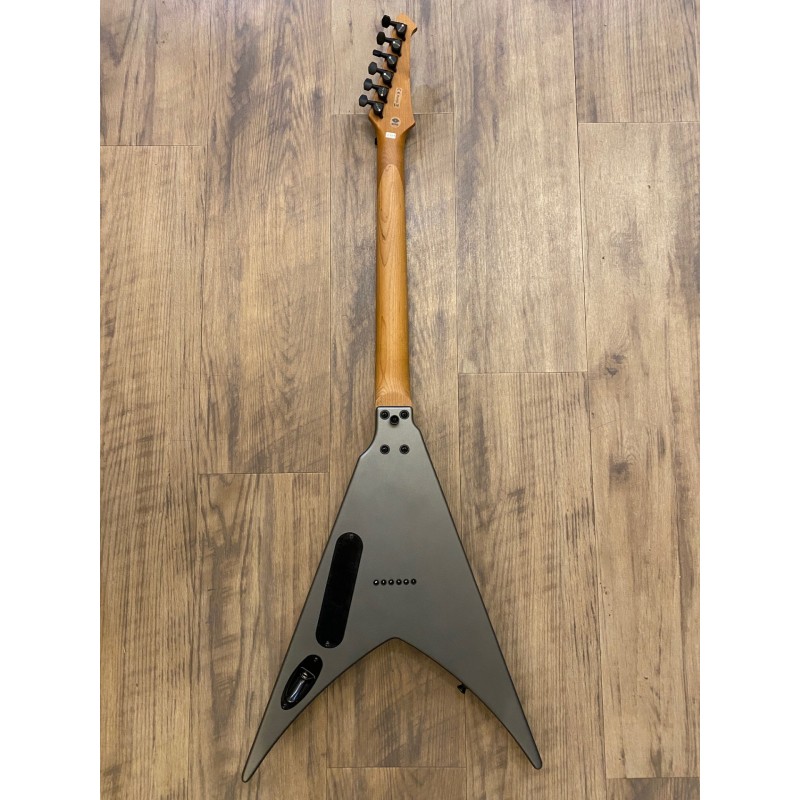 Corps : Peuplier torréfiéFinition : Satin SilverSilhouette : Double CutawayManche : Érable canadien grilléProfil du manche : D moderneManche : Ebony Tech amélioréRayon de la frette : 14"Nombre de frettes : 24 JumboDiapason : 25,5"Sillet : OsLargeur du sillet : 43 mm, 48 mm sur les modèles à 7 cordesBarre de réglage : Double actionMécaniques : Noir, verrouillableMicros : HH, Spira Villain, Custom Made, 12k Output, Ceramic MagnetChevalet : Fixe, String-Through HardtailCommandes : 1 volume, 1 tonalitéCouleur de l'accastillage : noir