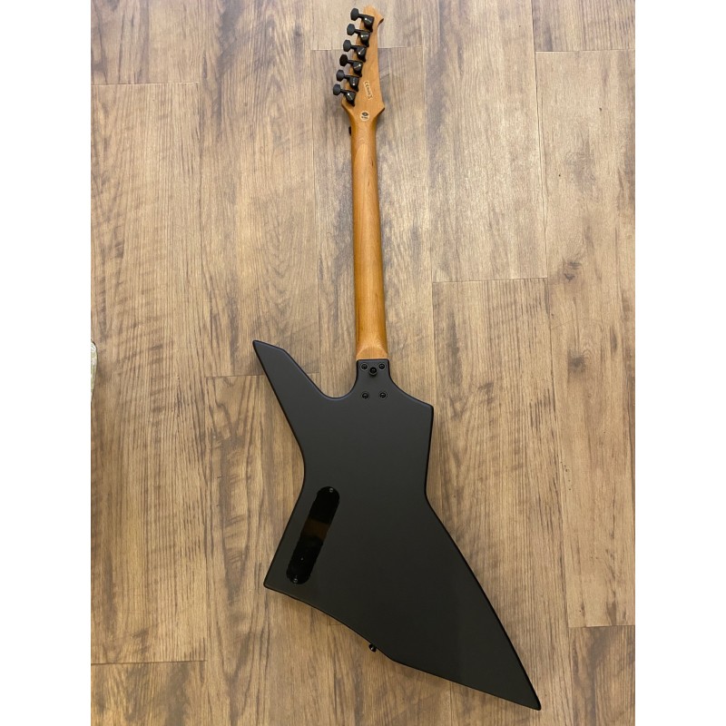 Corps : Peuplier torréfiéFinition : Satin BlackSilhouette : ExplorerManche : Érable canadien grilléProfil du manche : D moderneManche : Ebony Tech amélioréRayon de la frette : 14"Nombre de frettes : 24 JumboDiapason : 25,5"Sillet : OsLargeur du sillet : 43 mm, 48 mm sur les modèles à 7 cordesBarre de réglage : Double actionMécaniques : Noir, verrouillableMicros : HH, Spira Villain, Custom Made, 12k Output, Ceramic MagnetChevalet : Fixe, String-Through HardtailCommandes : 1 volume, 1 tonalitéCouleur de l'accastillage : noir